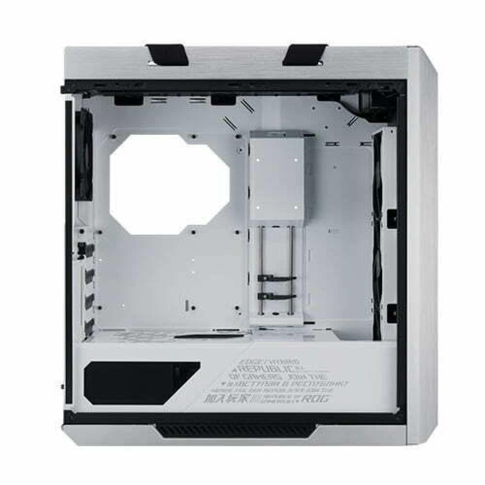 ASUS ROG STRIX HELIOS GX601 RGB White GAMING CASE with three tempered-glass panels, a refined aluminum frame, and integrated front-panel RGB lighting. Built-in cable management, including a multifunction cover with GPU braces, keeps the interior sharp and tidy. Engineered for expandability and performance, it’s ready for an up to EATX motherboard and serious water-cooling setups making it the perfect choice for a classic ROG showcase build. The tempered-glass panels are bottom-hinged, meaning they will remain supported at an angle until you’re ready to detach them completely. Fit up to three graphics cards in standard orientation, or two vertically for extra showcase flair using a bundled bracket. Built to perform and primed for expansion, ROG Strix Helios can accommodate an up to EATX motherboard and offers ample space for hardcore water-cooling setups. With support for up to 420mm front and 360mm top radiators, the room is also reserved for installing a water-cooling pump and reservoir. The I/O panel is loaded with connectivity, including a reversible USB 3.1 Type-C port. It also features dedicated fan speed and RGB lighting controls for making adjustments on the fly. Easily carry your prized build to LAN parties using the ergonomic and stylish fabric handles that are rigorously tested to support up to 50 kg. Premium design & aesthetics Made for showcase builds with three tempered-glass panels, brushed-aluminum frame, and integrated Aura Sync RGB front lighting AURA SYNC RGB LIGHTING Featuring integrated addressable RGB LEDs in the front panel that can be customized using a dedicated control button or with Aura software, ROG Strix Helios can cast millions of colors and a range of effects that can be synchronized with a vast ecosystem of components to augment your build. Clean build made easy A multifunction cover with graphics cardholders, a PSU shroud, and a translucent rear cable cover offer effortless cable management Versatile GPU mounting Install three graphics cards in standard orientation, or two vertically for extra showcase flair using a bundled bracket Ready for serious cooling Supports an up to EATX motherboard, with room for 420mm front radiators and water-cooling pump and reservoir Advanced I/O panel USB 3.1 Gen 2 Type-C™ port, four USB 3.0 ports, an RGB-lighting control button, and a fan-speed control button Comfortable case handles Easily carry your prized build to LAN parties with ergonomic and stylish fabric handles