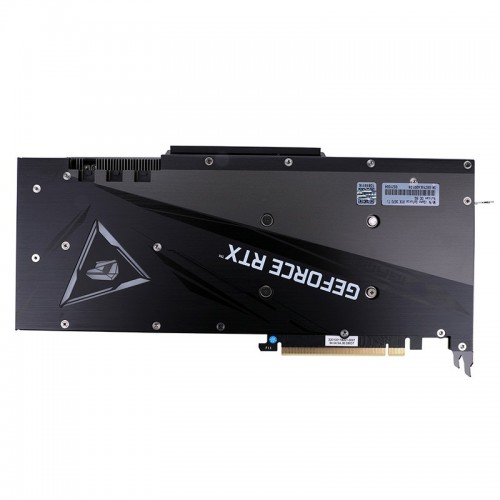 Three fans sit on top of the card, and Colorful states that its new 13-blade design with a slightly raised edge help to move more airflow across the card and keep it cool. The company’s new Vacuum Cooper Plate technology helps to draw heat away from the card as well, by using a special chamber containing cooling liquid and copper powder. It also covers a larger surface area compared to the previous generation. The aluminum back plate features the GeForce RTX branding along with an RGB-compatible i Game logo.