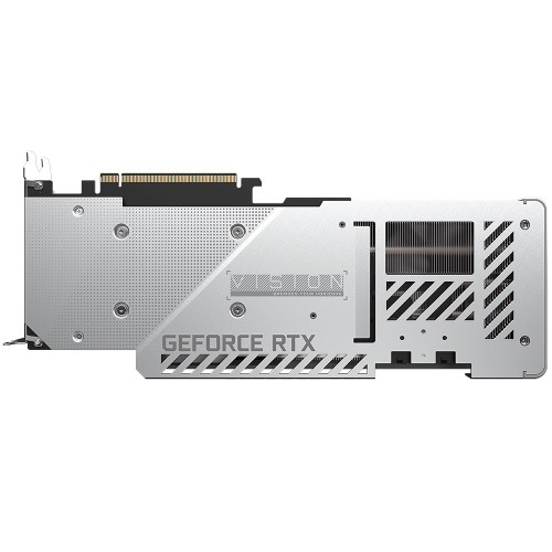 Graphene nano lubricant can extend the life of the fan by 2.1 times, close to the life of double ball bearing, and is quieter. It has an extended heatsink design that allows air flow to pass through, providing better heat dissipation. With direct contact to the GPU and VRAM, the large copper plate combines the composite heat pipes to efficiently transfer heat generated from the interior cores to the heat sink. It comes with 16.7M customizable color options and numerous lighting effects, you can choose lighting effects or synchronize with other AORUS devices. Gigabyte RTX 3070 Ti VISION OC metal backplate not only provides an aesthetical shape but also enhances the structure of the graphics card to provide complete protection.The Gigabyte RTX 3070 Ti VISION OC comes with 2 years of warranty.
