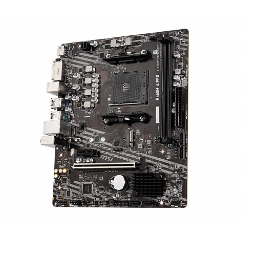 The MSI B550M-A PRO AM4 Micro ATX AMD Motherboard Supports AMD Ryzen 5000 3000 Series desktop processors not compatible with AMD Ryzen 5 3400G Ryzen 3 3200G and AMD Ryzen 4000 G Series desktop processors Supports DDR4 Memory up to 4600 OC MHz It has a premium layout and digital power design to support more cores and provide better performance Made with 2oz Thickened Copper PCB An enhanced PCB design improves heat dissipation and performance reliability For the superior sound quality it has studio-grade sound quality All new dragon center software which integrates all MSI exclusive tools with the user-friendly user interface.